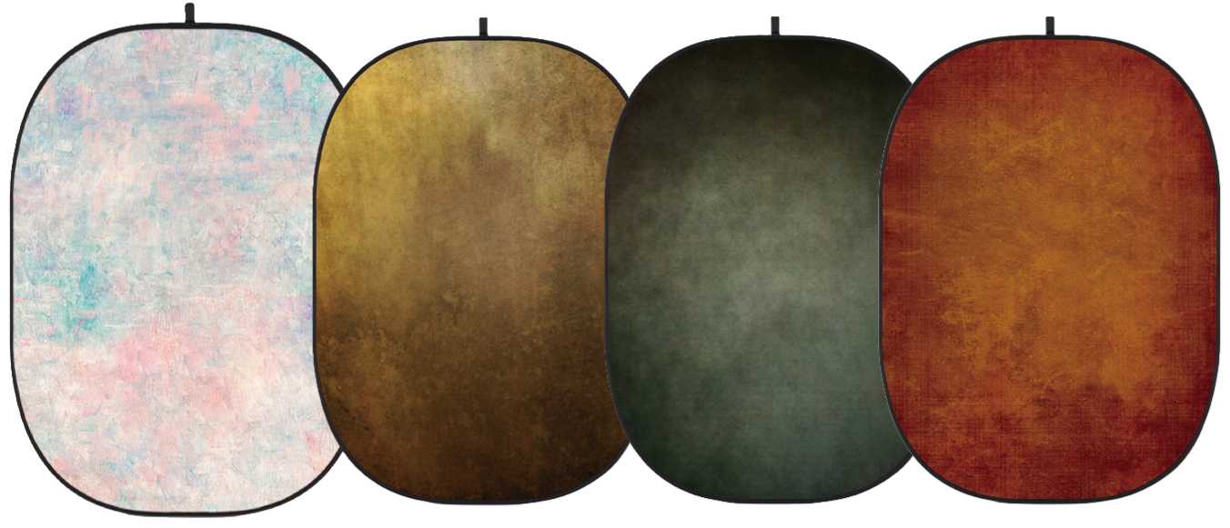- Dans le cadre de mes séances photo au domicile de clients, il m'arrive parfois, selon l'espace disponible, de mettre en place des fonds pliants décoratifs. Ces fonds d'une taille de 2 mètres par 1,5 mètre sont conçus pour être non réfléchissants et résistants aux plis lorsqu'ils sont dépliés. Ils sont utilisés principalement pour les portraits.